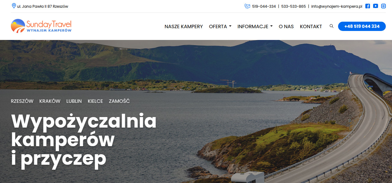 Sunday Travel to profesjonalna wypożyczalnia kamperów, oferująca nowe modele pojazdów marek takich jak Chausson i Benimar. Nasze kampery są w